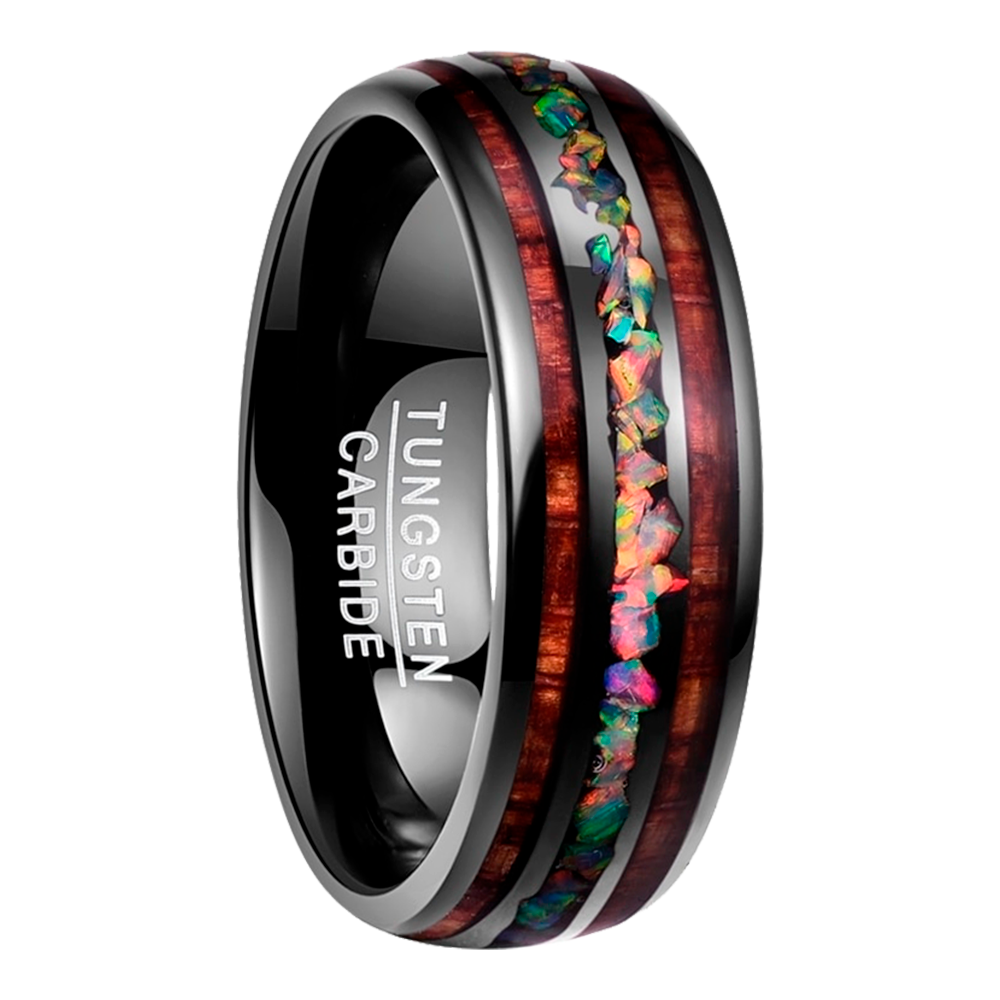 The deep black tungsten base enhances the contrast, while the polished edges and smooth comfort-fit interior deliver a refined wearing experience. Durable, symbolic, and visually captivating, Foresta Marina blends organic textures with modern craftsmanship.